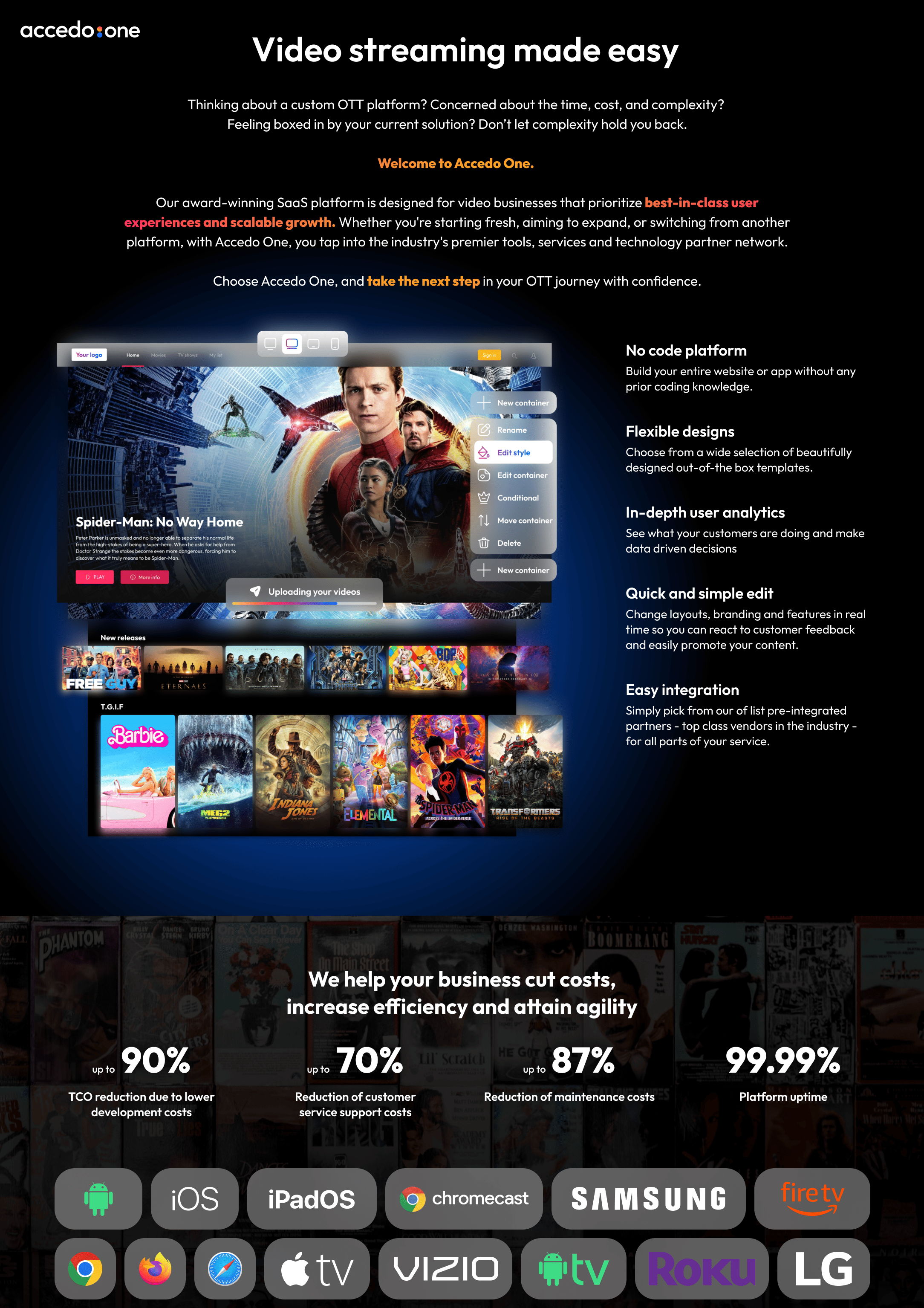 Maximize your profits by reducing OTT technical costs by up to 90% with Accedo One SaaS platform.