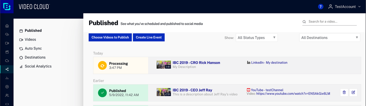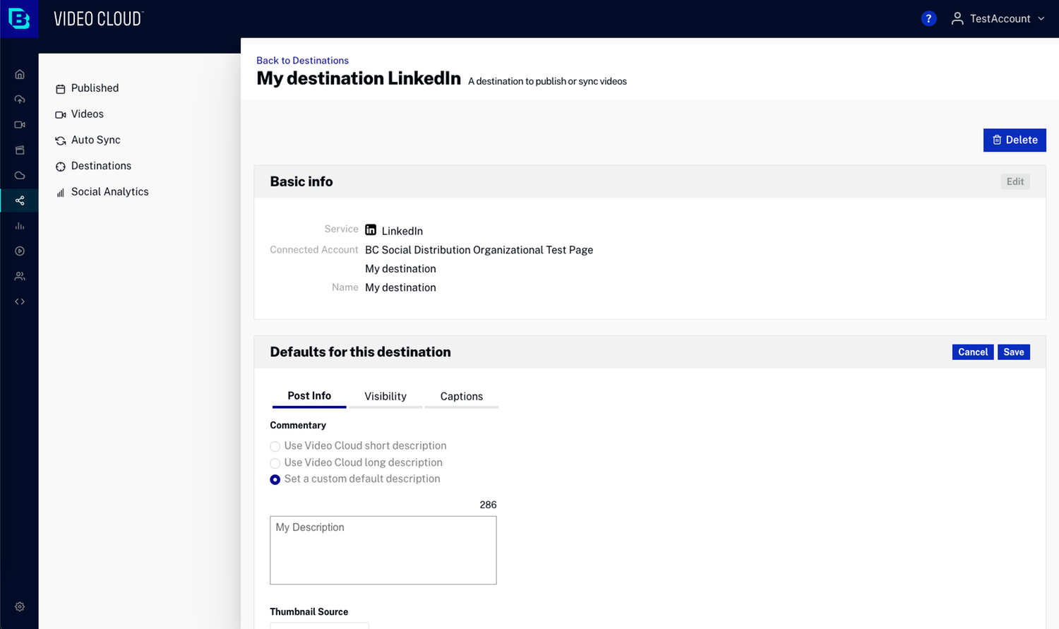 Easily publish videos in your Video Cloud account out to LinkedIn.