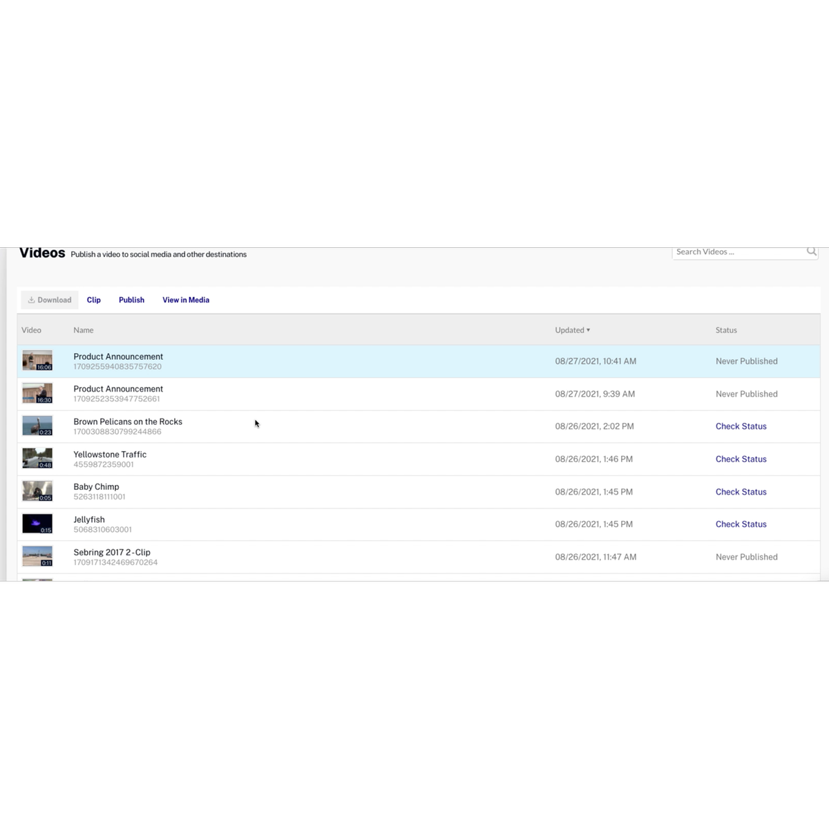 • Publish videos