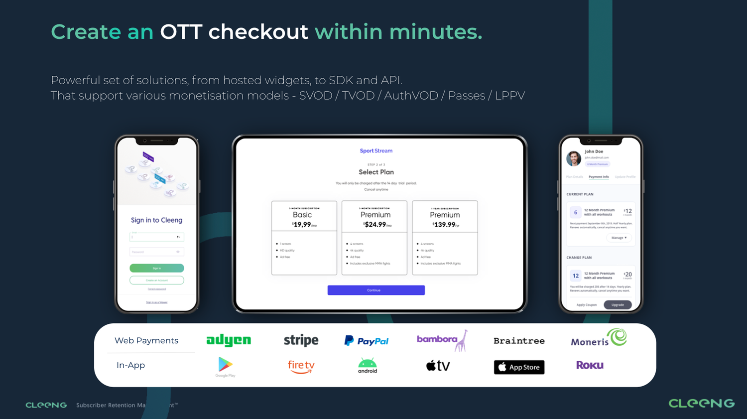 Cleeng provides Media & Entertainment broadcasters the toolkit to build a world-class D2C subscriber platform. Seamlessly convert customers and retain them for years.