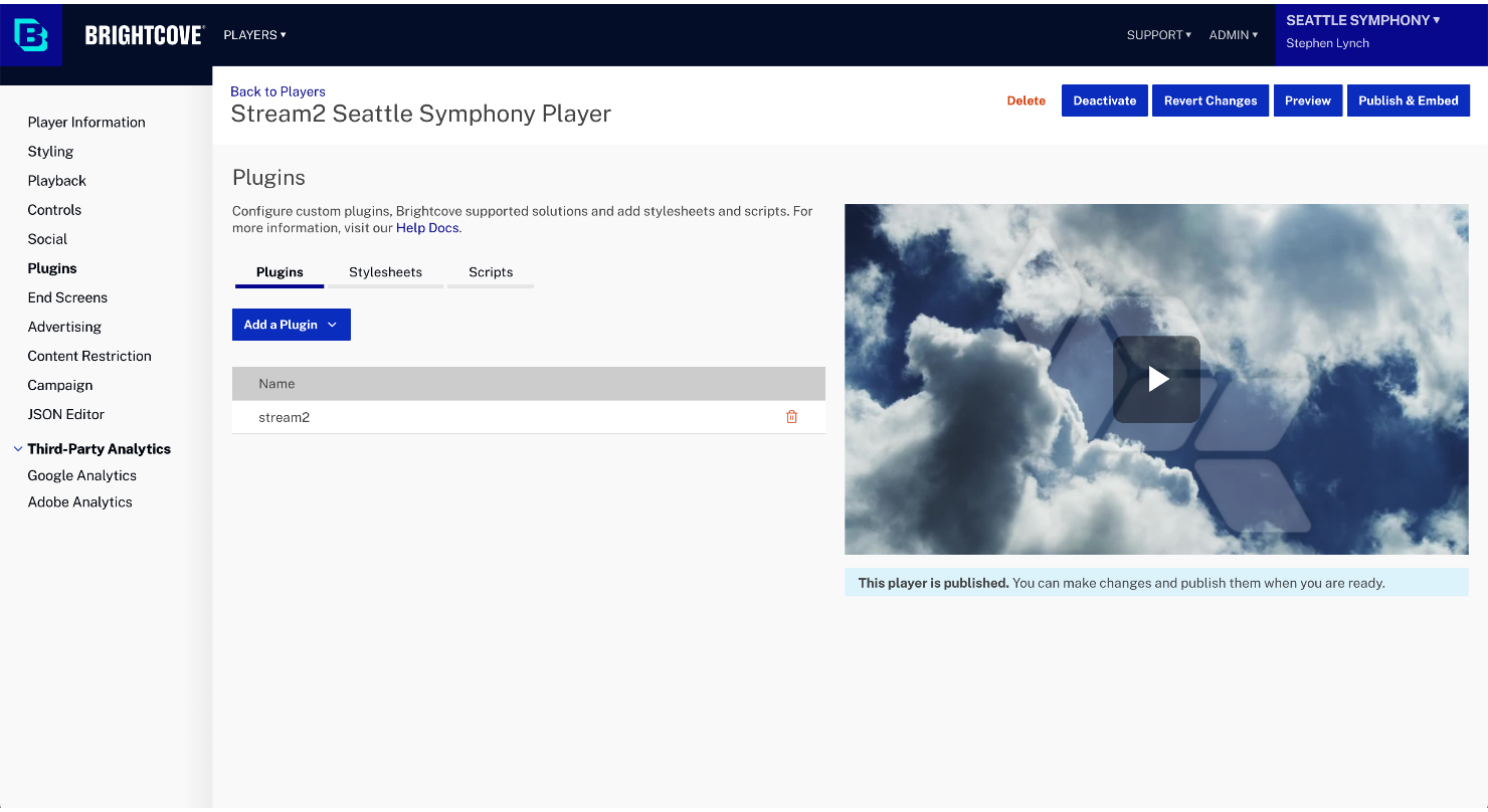 Our integration is a complete end-to-end solution to monetize and control access to Brightcove videos. It starts with a highly configurable Stream2 Form (presale, gifting, add-on donation, promos) that uses Stripe for payment with instant access to the Brightcove product along with a transactional email containing a magic link. Our CRM integration records the transaction and authenticates access. We use Brightcove Campaign for analytics and video cue points can trigger marketing automations.