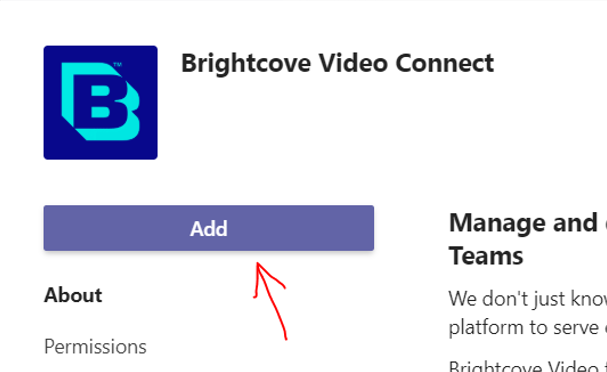 Brightcove Video Connect for Microsoft Teams allows you to add and manage videos and playlists in Brightcove Video Cloud Studio.