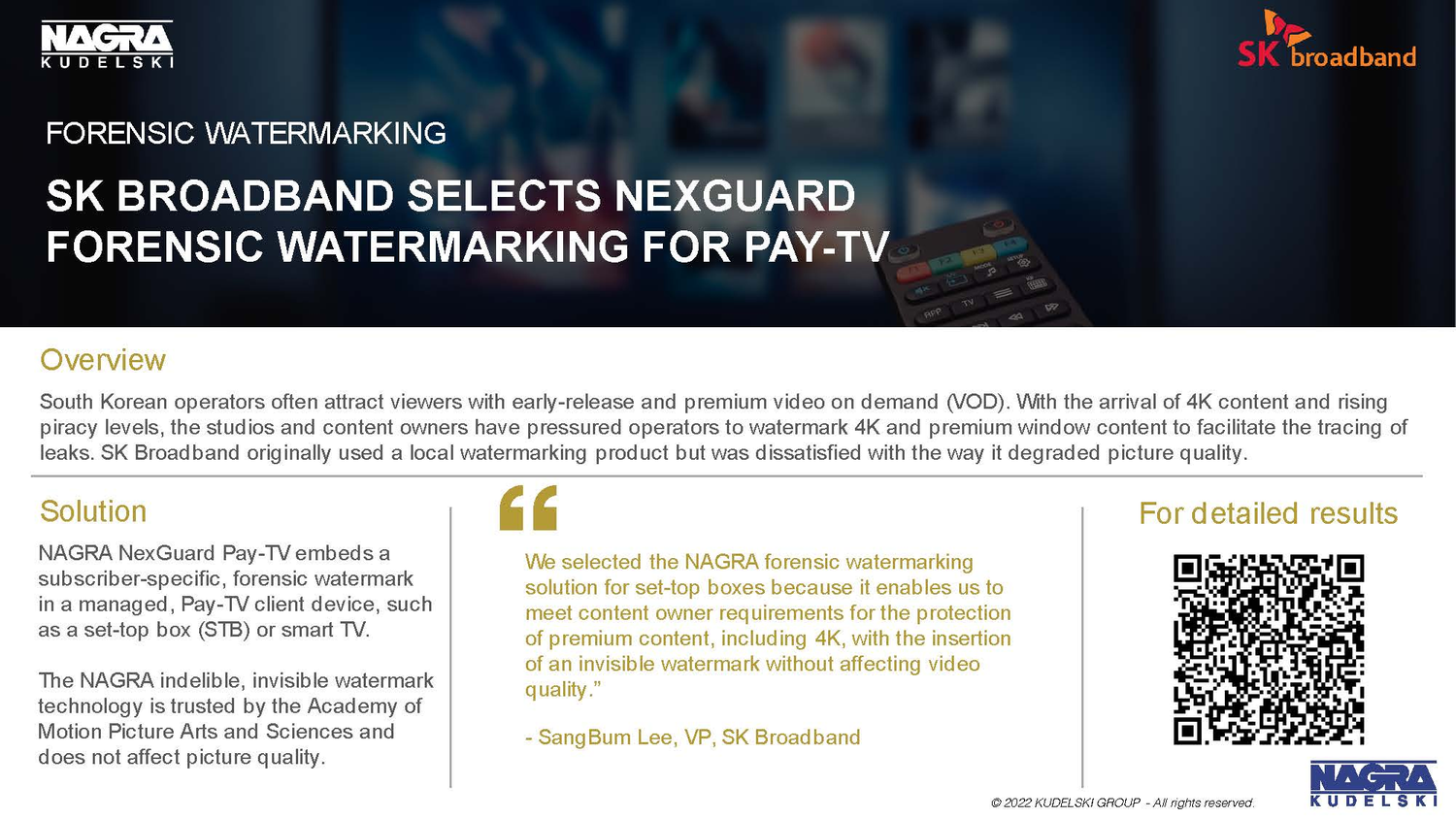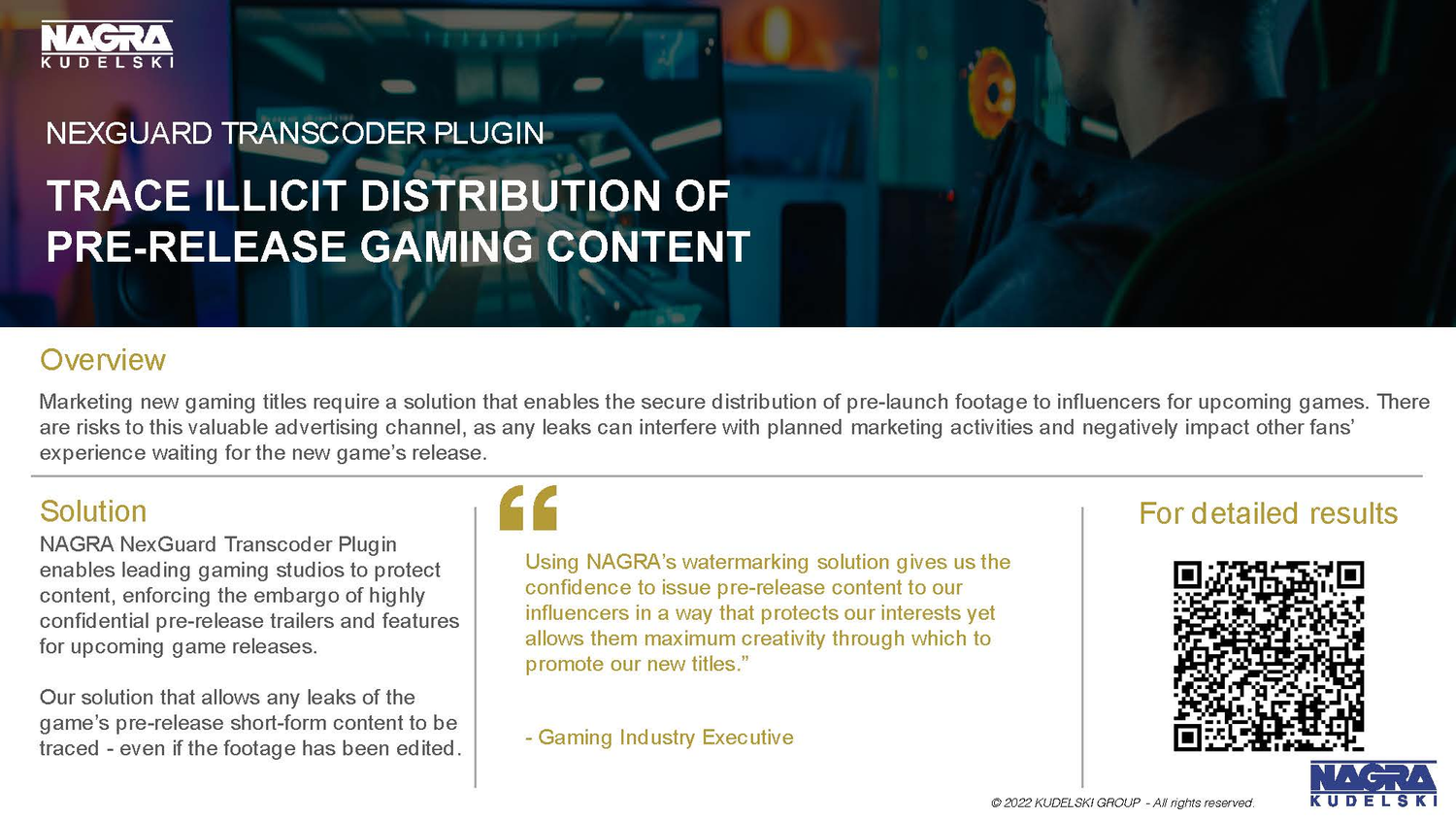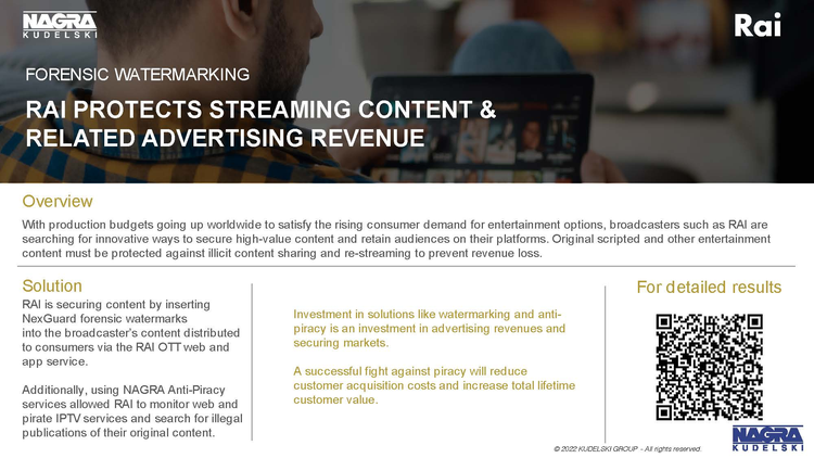 -Use NAGRA NexGuard forensic watermarking to operate with confidence. Protect content delivered across wide distribution networks with near real-time leak detection.