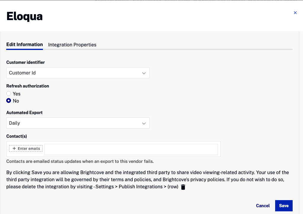 • Synchronization process to send tracking data from Video Cloud to Oracle Eloqua