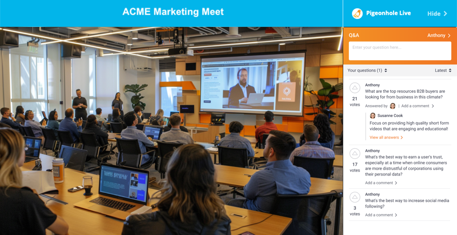 - Use real-time insights from Pigeonhole Live's analytics to customize content and strategies for better audience interaction and engagement.