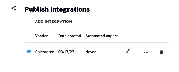 • Once a connected app has been created in Salesforce, a publish integration can be added to the Audience Insights system.