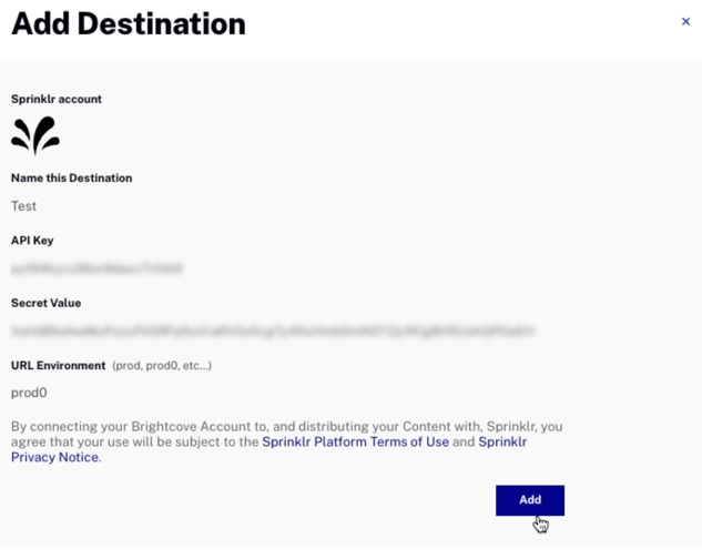 Brightcove users can connect to their Sprinklr accounts and tag videos managed in Brightcove for automatic transfer to their Sprinklr account where the videos can then be published to the supported social media channels within Sprinklr