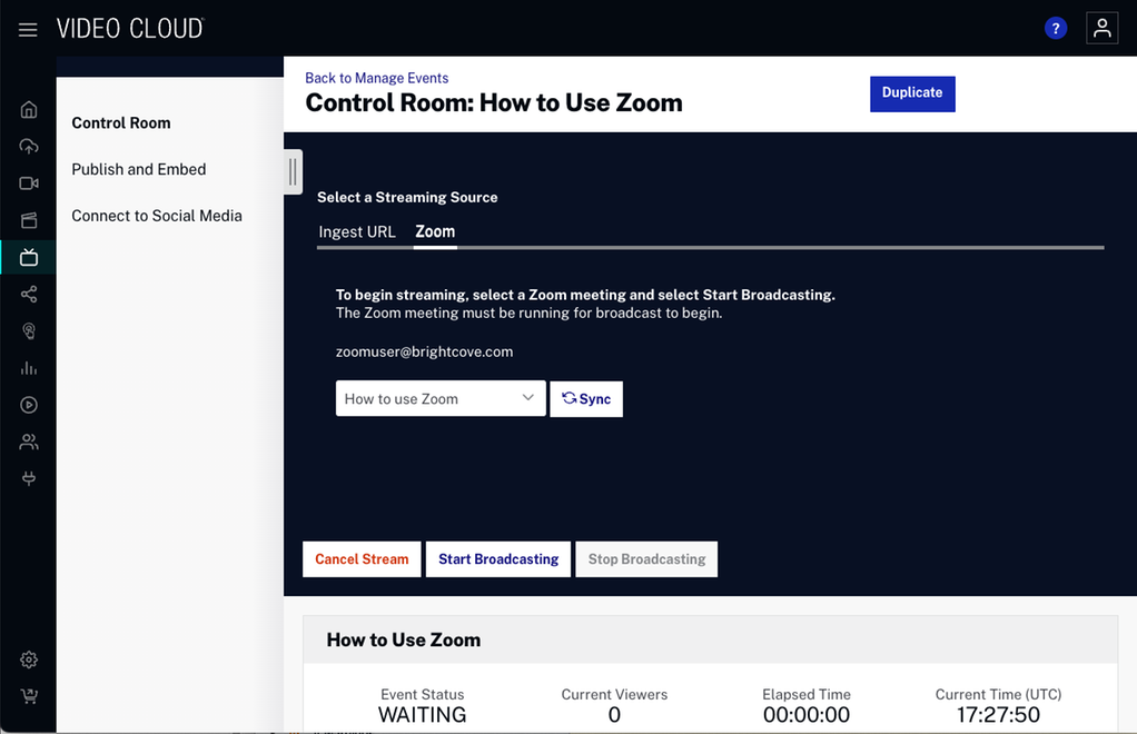 Zoom to Brightcove Live